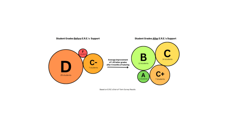 Over the last few months in E.R.E.'s tutoring program, I've achieved some significant milestones. Academically, I've seen consistent improvements in my grades and improved study habits. I also got first place at my first debate tournament of the season and was a top 7 finalist at the Yale University Invitational Debate out of 150 competitors. Tutoring has also played a vital role in boosting my confidence and allowing me to actively engage in class discussions and presentations without hesitation especially in my math classes. Beyond academics, I've developed valuable life skills such as problem-solving, communication, and organization, which have positively impacted my overall quality of life. I am truly grateful for all the help the E.R.E. tutoring community has provided. I am confident the skills taught by E.R.E. and [my tutor] will continue to help me throughout my journey in university and life as I grow up.